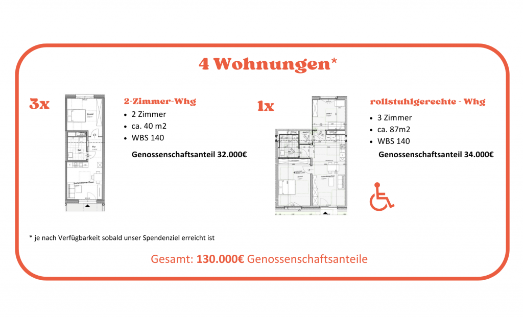 Für die erste Wohnung benötigen wir 34.000 € an Genossenschaftsanteilen – und dafür brauchen wir dich.